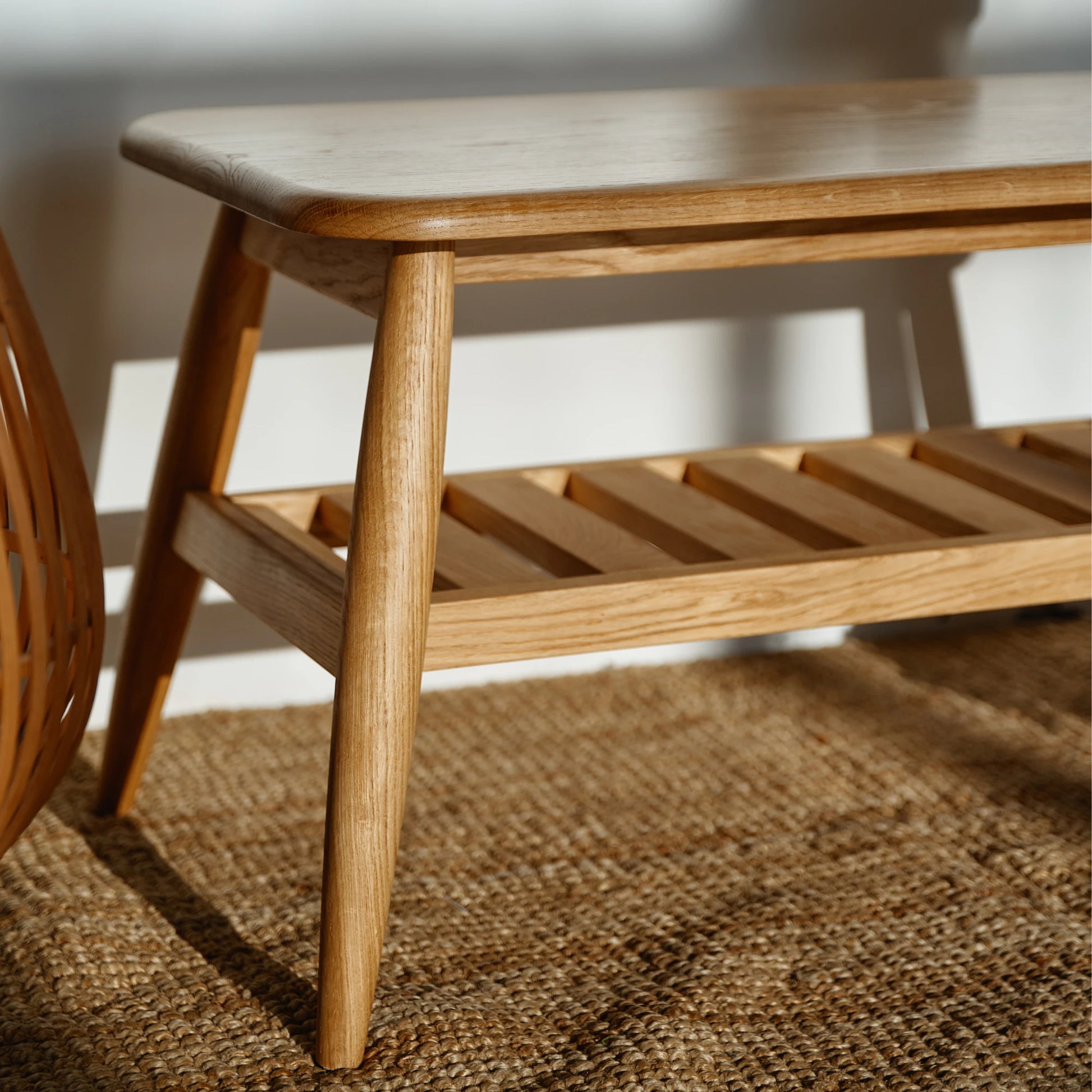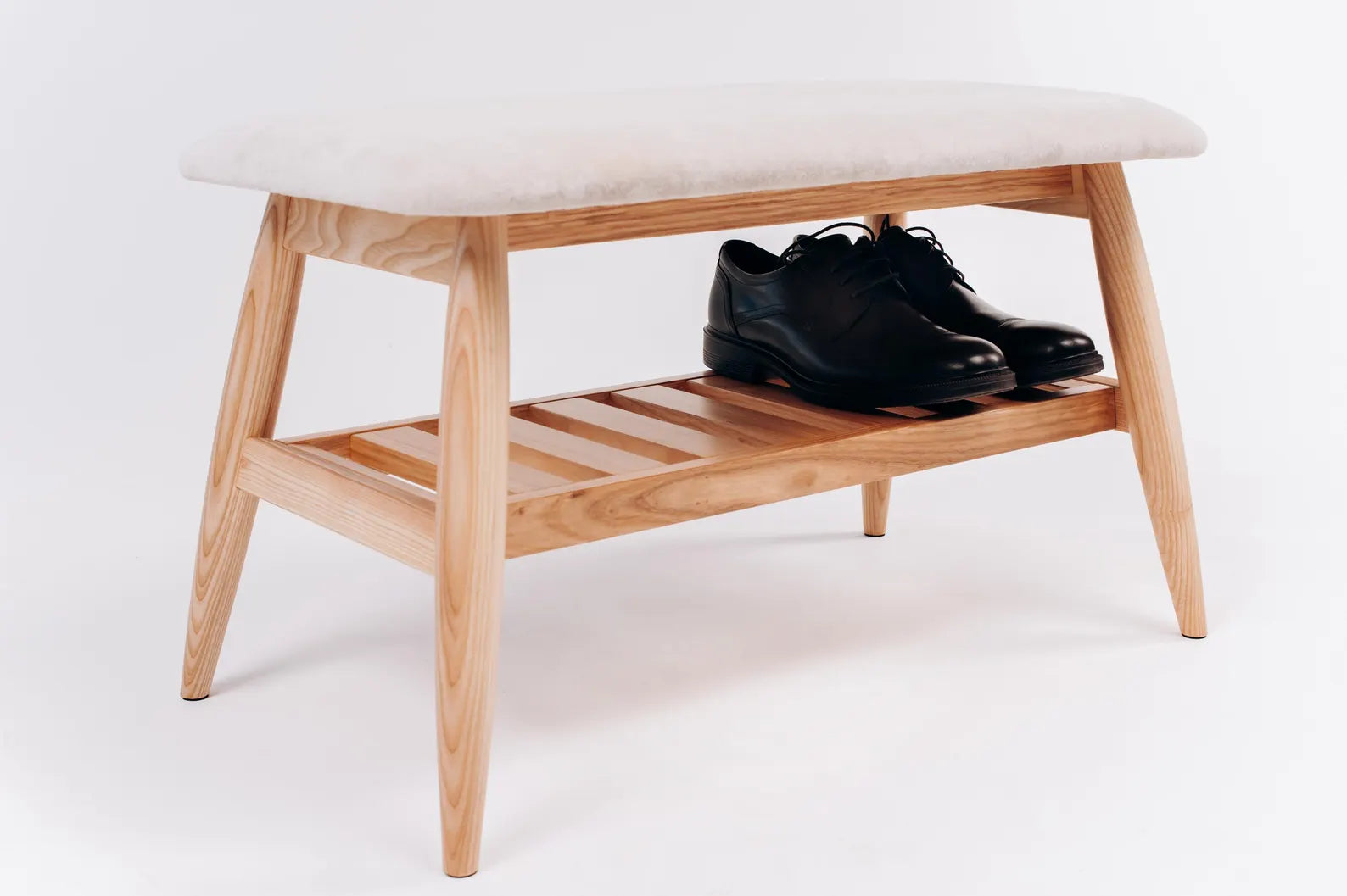 Handmade Solid Oak Bench with Shoe Shelf – Entryway Storage Furniture