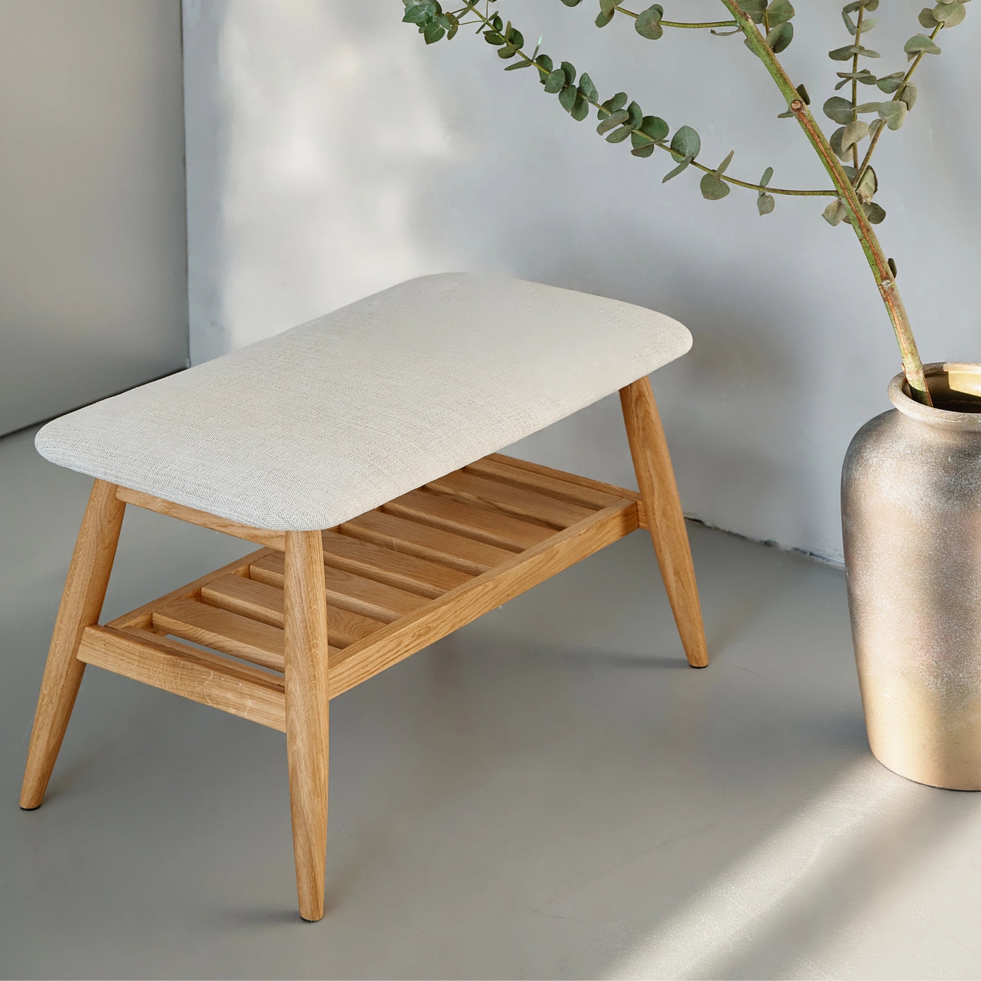 Add a touch of rustic charm to your space with this handmade solid oak shoe bench. Perfect for the hallway or living room, this wooden oak bench offers both seating and storage with a convenient shoe shelf. Elevate your decor with this stylish and functional piece from our selection.